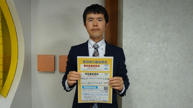 「12月16日からの愛知県最低賃金」のお知らせをしてくださいました。