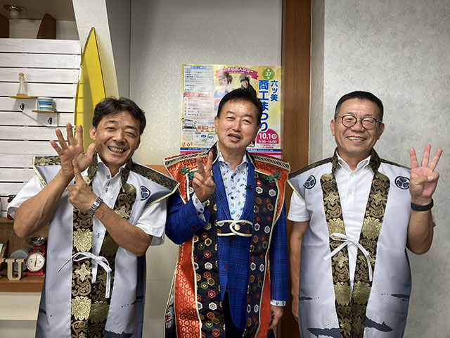 【市民伝言板 9月9日(土) 8:55~初回放送】 本日は、1組の方にミクスのスタジオにお越しいただき、 市民伝言板の収録を行いました! 六ツ美商工まつり実行委員会のみなさんです。 10月1日に開催される「六ツ美商工まつり」の告知をしてくださいました。 情報満載の市民伝言板をチェックして いろいろな所に遊びに行ってくださいね~(^^)ノ 放送をお楽しみに~!!