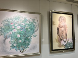 伝馬通1丁目にある岡崎信用金庫資料館で現在、日本画家福田千恵企画展示ガンダーラとバラ~愛しきバラに戦争はいらない~が開催されています。開催初日となったこの日、オープニングセレモニーが行われ、作者の福田さんが挨拶、来賓から祝辞が述べられました。会場は華やかな雰囲気に包まれ、テープカットと共に展示がスタートしました。会場には、仏教美術・ガンダーラと平和への願いを象徴するバラを融合させた作品26点が展示。3月1日まで開催されています。