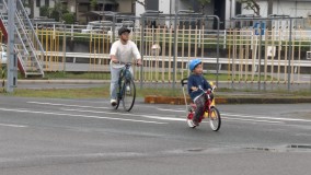 上地3丁目にある上地自動車学校で26日、「KidsサイクリングDay」が行われました。イベントでは、上地自動車学校内のコースが開放され、自由に自転車を走らせる練習ができ、また、障害物をよけながら走行する「チャレンジコース」などもありました。