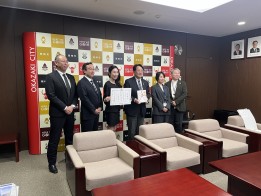 市役所で14日、マルヤスグループ3社から岡崎市へ寄附が行われました。マルヤス工業株式会社とグループ会社の株式会社マルヤス、株式会社マセックで、「多様な活躍の基礎充実」に対する寄附として岡崎市に3社合わせて700万円の寄附が行われました。この日市役所には、株式会社マルヤス 代表取締役社長 山田真里さんをはじめとする関係者が訪れ、山田さんより内田康宏 岡崎市長へ目録が手渡されました。