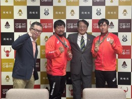 12日、「第25回夏季デフリンピック競技大会 東京2025」に出場した岡崎在住の石田考正選手と岡崎聾学校出身の坂田翔悟選手が市役所を訪れ市長に大会の結果を報告しました。石田選手は、陸上ハンマー投げで出場。55m51cmという記録を叩き出し、第3位。坂田選手は、陸上100mと、4×100mリレーに出場。100mでは11秒の結果を残し8位に、リレーでは第三走者として走り抜け41秒22で優勝しました。この日、両選手は大会を振り返り、結果への思いを市長へ話していました。