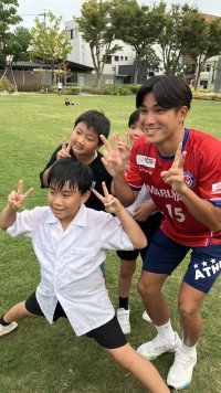 籠田町にある籠田公園で24日、FCマルヤス岡崎の選手と公園で遊ぶ、「マルヤススマイルパーク」が行われました。このイベントは、中心市街地との交流の機会を設け、FCマルヤス岡崎のことを知ってもらうと共に、子どもたちと一緒に遊んで体を動かすことの楽しさを知ってもらいたいと行われ、今回で2回目の開催となりました。
