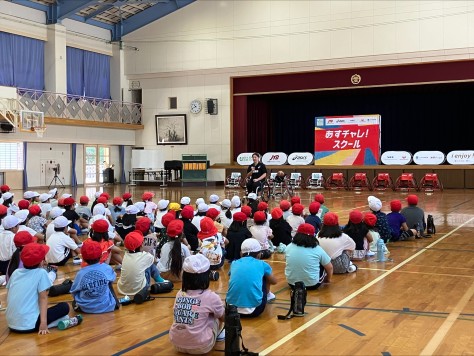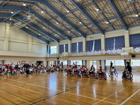 伊賀町にある愛宕小学校で26日、あすチャレ!スクールが開催されました。これは、パラスポーツの体験型出前授業で、講師との対話や体験を通じて、児童・生徒に共生社会への気づきや学びの機会をつくりたいと、日本財団パラスポーツサポートセンターが主催し全国で行われています。今回、車いすバスケットボールチーム「NO EXCUSE」現役プレイヤーの橘貴啓さんが講師を務め、車いすバスケットボールの説明や実際にシュートをうつなどプレーを披露しました。その後、代表児童が車いすバスケットボールを実際に体験し、慣れない車いすを操作しながらゴールまで走り、競技の難しさや楽しさなどを体感していました。