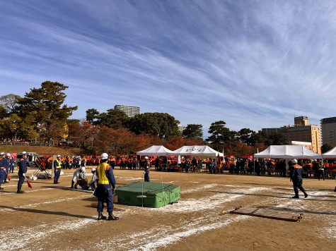 殿橋下流の乙川河川緑地で23日、「令和7年度消防団員年間訓練効果確認会」が行われました。この確認会は、消防団員が日頃から訓練している基本技術の成果を確認し、消防活動に必要な技能の向上を図ることを目的に、岡崎市消防本部と岡崎市消防団連合会の主催で実施されました。当日は、市内の消防団から21チームが参加。震災・風水害・火災などの災害を想定し、団員が協力して、目標達成までの迅速かつ的確な活動を披露しました。団員たちは多くの来場者が見守る中、安全・正確・迅速な作業が求められるため、連携を取りながら全力で取り組んでいました。