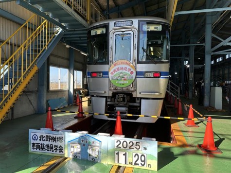 北野町にある愛知環状鉄道車両基地で11月29日、「愛知環状鉄道車両基地見学会」が行われました。見学会は、小学3年生から6年生までの児童とその保護者を対象に、車両基地の見学や車両ドアの開閉、車内放送など体験し、参加者たちは普段立ち入ることができない車両基地内での見学を楽しんでいました。