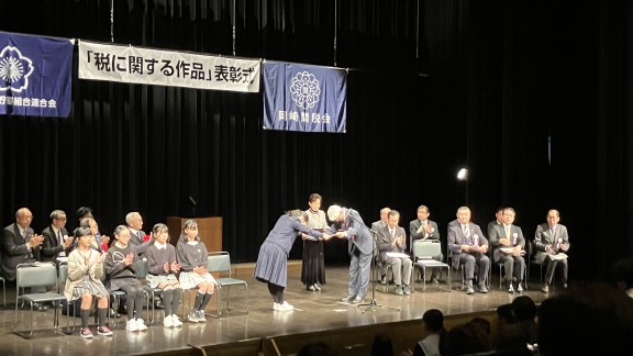 康生通西4丁目にある図書館交流プラザ りぶらホールで14日、「税に関する作品」表彰式が行われました。「税に関する作品」は、税知識の普及拡大を目的に、岡崎納税貯蓄組合連合会と岡崎間税会が毎年小中学生から作品を募集しています。