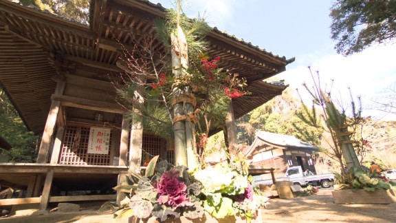 岩中町にある岩谷観音堂で12月27日、正月に向けた門松づくりが行われました。岩谷観音は、奈良時代の僧・行基が彫ったと伝えられる観音菩薩です。門松づくりは、岩谷観音への日頃の感謝の気持ちを込めて、毎年正月を前に岩中町の人たちが力を合わせて行っています。門松づくりでは、町民が竹藪から竹を切り出す作業から行われました。その後、竹の先端を切りそろえ、縄で束ねて飾り付けを行い、完成した門松を観音堂の前に設置しました。岩谷観音は、今年、17年に一度の御開帳を控えており、門松づくりに参加した町民は、真剣な表情で準備にあたっていました。なお、17年に一度の御開帳は、3月29日に行われます。