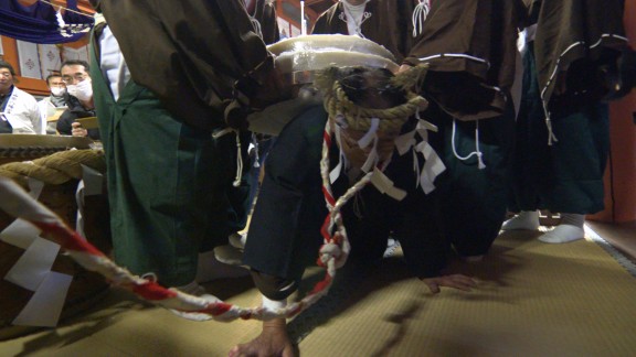 山中八幡宮で3日、五穀豊穣を祈る御田植神事「デンデンガッサリ」が行われました。デンデンガッサリはおよそ500年前から続くといわれており、岡崎市の無形民俗文化財に指定されています。神事は、祈祷から始まり、お田植え歌と呼ばれる歌を、太鼓の音に合わせて田植えから稲が実るまでの様子を歌い上げます。この時、「デーンデーンガッサリヤー」と歌うことから、この神事の名がついたといわれています。神事の最後には、大鏡餅を、収穫した稲に見立て、牛役がそれを背負い蔵まで運ぶ様子が表現されました。途中、牛役が餅の重荷に耐え切れず倒れこむと、「牛が倒れるほど豊作だ」と喜び、五穀豊穣を願いました