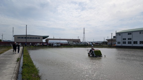 坂左右町にあるJAあいち三河本店で25日、お米作りの基礎を学ぶ講習会「お米塾」が行われました。この講習会は、1年間を通して、稲作の基礎から実践までを学ぶカリキュラムとなっています。参加した12名は、講師の指導を受けながら機械の操作や作業の流れを確認し、田植え機に乗って田植え作業を体験しました。次回は5月30日に開催され、除草の方法や病害虫の予察・対策について学ぶ予定です。