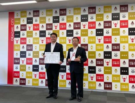岡崎信用金庫が岡崎市へ現金を寄付しました。