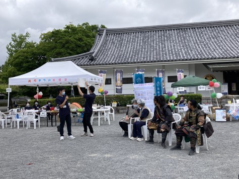 岡崎公園内の三河武士のやかた家康館前で12日、岡崎市民病院の看護師たちが「岡崎まちの保健室」を開催しました。このイベントは、市民の健康への意識を高めることを目的に今回初めて行われました。各分野の看護師たちが集まり、健康相談や血圧測定、ハンドマッサージなどを実施していました。また、グレート家康公「葵」武将隊が劇仕立てでAEDの使い方や認知症予防のエクササイズを披露し会場は大いに盛り上がっていました。
