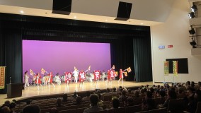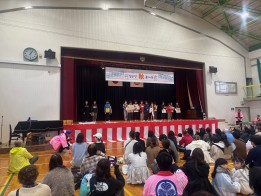 ステージでは、六ツ美中部小学校 5年生が総合学習で考案したお米うどん「体にいい おっこめん もちもちすぎちゃダメですか?」の考案経緯などを紙芝居を通して発表を行いました。