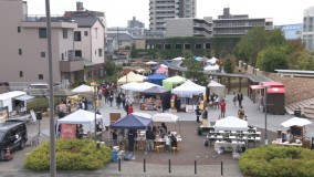柱町にある出会いの杜公園で8日と9日の2日間、出会いの岡崎 駅マエ縁日が開催されました。駅マエ縁日は地元のお店をたくさんの人に知ってもらいながら、子どもたちに様々な体験をしてほしいと毎年行われています。会場には地元の飲食店や雑貨店、キッチンカーなど、36のブースが並びました。小学生が店長体験をする子どもマーケットやコーヒーの飲み比べができるブースなどもあり、大人から子どもまで多くの人が楽しんでいました。また、クリスマスアレンジメント作りや木製雑貨作りなどのワークショップもあり、来場者は、思い思いに作品づくりを楽しんでいました。会場は終日、多くの人でにぎわい、地域の交流の場となっていました。