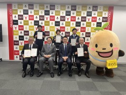 市役所で26日、令和7年度事業所対抗ウォーキングチャレンジの表彰式が行われました。これは、昨年10月から11月の2か月間、参加事業所の従業員が健康づくりの一環としてウォーキングに取り組み、歩数を競った事業で、今回、優秀な成績を収めた上位5社を表彰する表彰式が行われました。岡崎市では昨年、SOMPOひまわり生命保険株式会社と健康づくりの推進に向けた事業連携に関する協定を締結しており、その締結に基づき、昨年初めて事業が実施され、今回その成果をたたえる表彰式が行われました。出席者は、表彰式を通して、改めて健康づくりへの意識を高めていました。 -