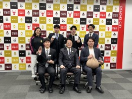 25日、「第6回アトツギ甲子園」の大会へ出場した4名が市役所を訪れ、内田市長に結果を報告しました。アトツギ甲子園は、全国の中小企業や小規模事業者の後継予定者が、既存の経営資源を活かした新規事業のアイデアを競うピッチイベントで、今回中部ブロック大会に出場した15名のうち、4名が岡崎市から出場。全国大会には、このうち2名が出場し、有限会社稲垣石材店の稲垣遼太さんが優秀賞を受賞しました。