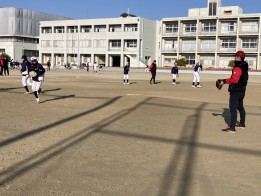 野球体験・指導には福岡中学校、南中学校、翔南中学校の野球部部員合わせて34人が参加し、岡崎市を拠点とする社会人野球チームによって指導が行われました。 -