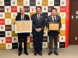 20日、六名学区防災防犯協会連合会の代表と副会長、岡崎警察署生活安全課の職員が市役所を訪れ、「令和7年度 安全なまちづくり関係功労者内閣総理大臣表彰」を受賞した事を内田市長へ報告しました。安全なまちづくり関係功労者表彰は、安心・安全なまちづくりの推進に顕著な功績があった個人や団体を表彰するもので、防犯関係の表彰としては最高位の賞です。六名学区は、防犯を中心に活動を行い見守り活動や空き巣対策、特殊詐欺被害防止に向けた独自の取り組みなど、多年にわたり地域防災に尽力してきた功績が評価され、今回の受賞につながった事を市長へ報告しました。 -