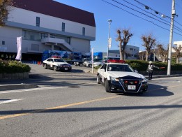 イベントでは、パトカーや白バイ、交通安全の文字を掲げたトラックなど全11台が市内へ出発し交通安全を呼びかけました。 -