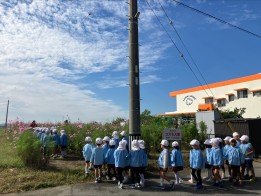 むつみみやこ幼稚園の東側にある畑で23日、コスモスの鑑賞が行われました。これは、コスモスを鑑賞することを通して、園児たちに秋を楽しんでもらいたいと、野畑農地・水・環境保全協議会の協力のもと、毎年行われています。コスモス畑は、景観形成のために6年前から整備され、広さは500平方メートルです。この日、207人の園児がコスモスを鑑賞し、さまざまな色や大きさのコスモスを触ったり、虫を数えたりしながら、楽しそうに鑑賞していました。